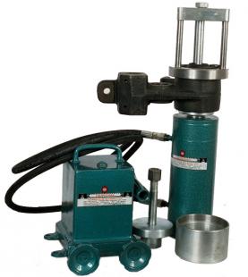 Aparelho desenvolvido para remoção e colocação das buchas que prendem a cabine no chassi, com grande economia de tempo e sem remoção do mancal.